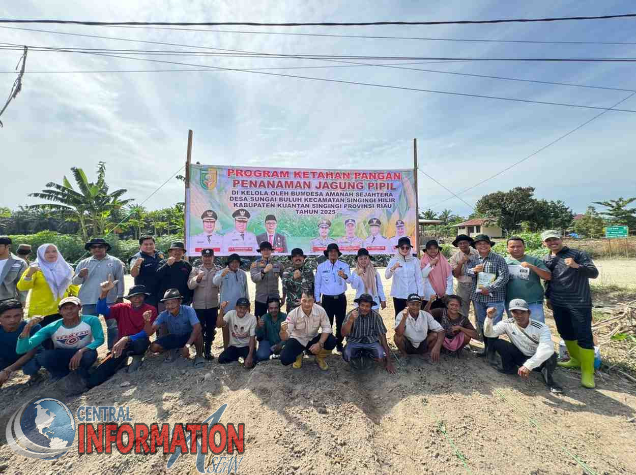 Riau-Kuantan Singingi-Cemtaralinformationasean.com,Dalam semangat mewujudkan ketahanan pangan nasional, Desa Sungai Buluh, Kecamatan Singingi Hilir, Kabupaten Kuantan Singingi, menunjukkan langkah progresif melalui pengelolaan lahan desa yang difungsikan sebagai sentra pertanian produktif. Langkah ini menjadi bukti nyata dukungan terhadap Program Asta Cita Presiden Republik Indonesia yang menempatkan ketahanan pangan sebagai salah satu prioritas pembangunan nasional.