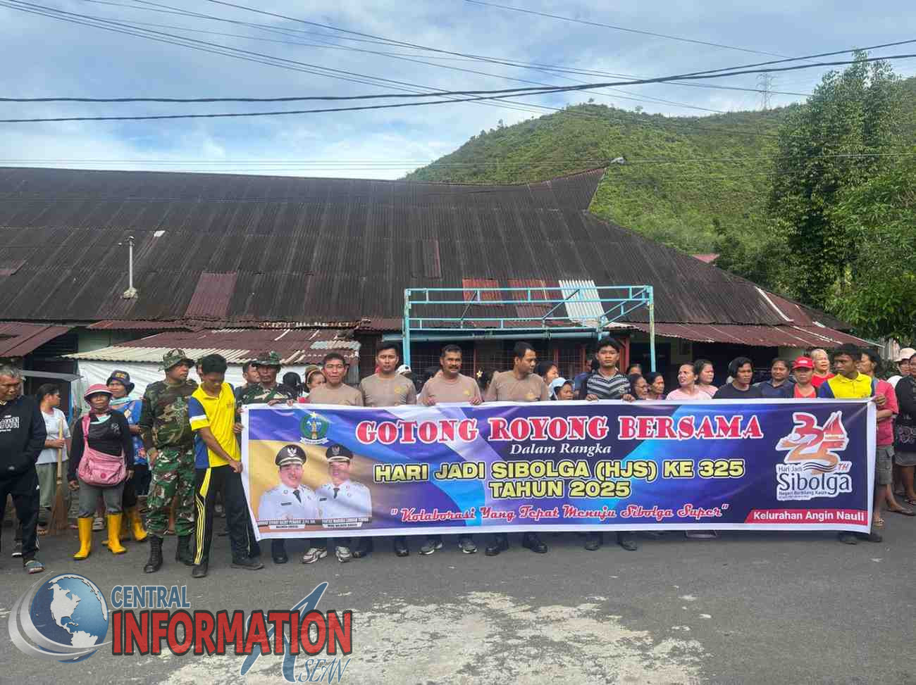 SIBOLGA -Centralinformationasean.com) Dalam rangka merayakan Hari Jadi Kota Sibolga yang Ke-325 Tahun 2025, Masyarakat bersama jajaran TNI dan Polri, serta Pemko Sibolga melaksanakan kegiatan gotong royong di Sungai Aek Doras, Kelurahan Angin Nauli, Kecamatan Sibolga Utara, Kota Sibolga. Kegiatan ini dilaksanakan pada Kamis, 10 April 2025, mulai pukul 07.30 WIB hingga selesai.