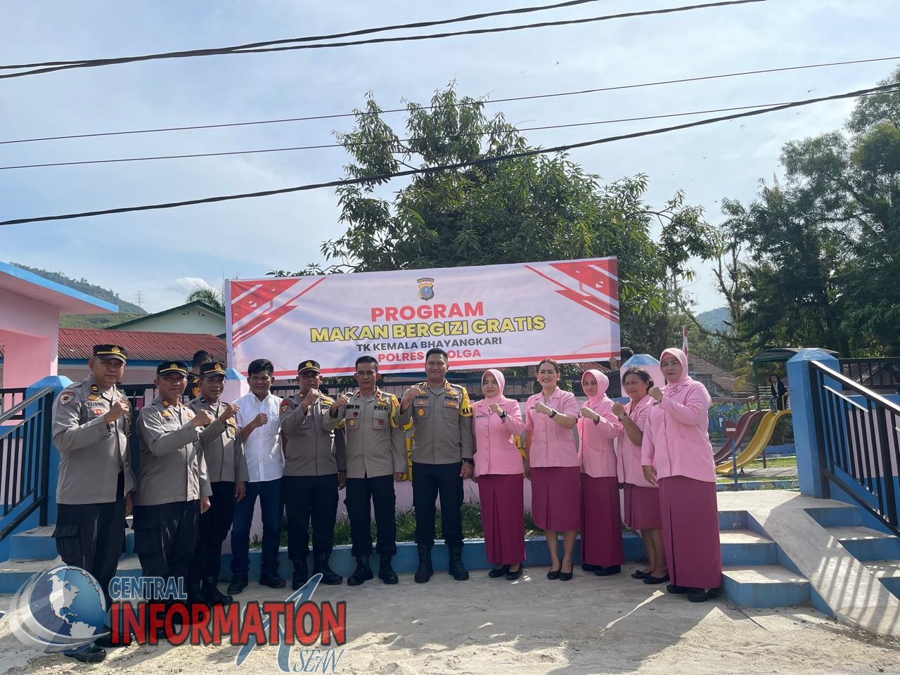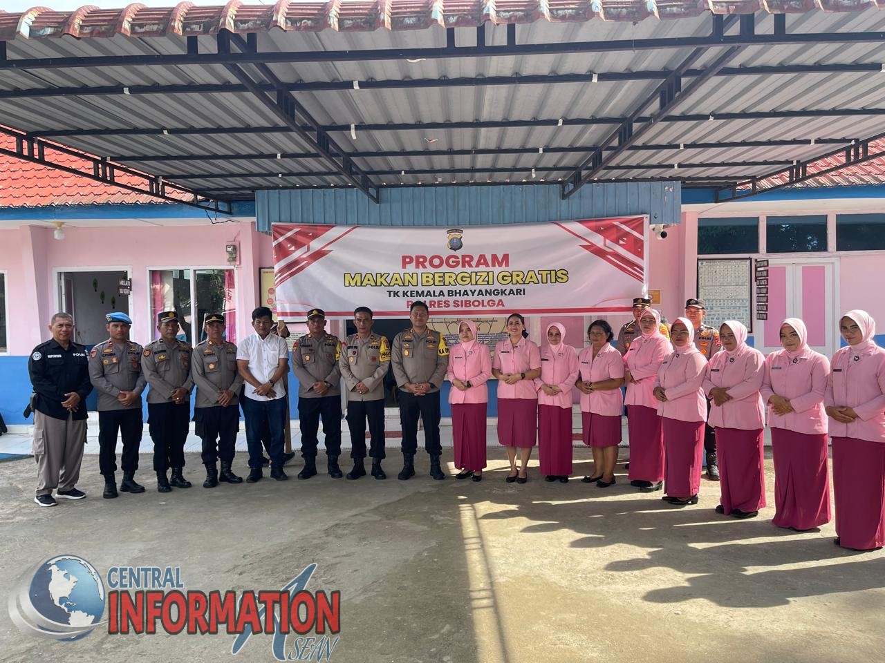 SIBOLGA -Centralinformationasean.com) Dalam rangka mendukung Program Nasional untuk mengatasi masalah gizi buruk dan stunting di Indonesia, Kapolres Sibolga AKBP Achmad Fauzy, S.H., S.I.K., M.I.K. bersama Ibu Ketua Bhayangkari, Ny. Aulia Fauzy, melaksanakan kegiatan Pemberian Makan Bergizi Gratis (MBG) yang diadakan di TK Kemala Bhayangkari 12 Sibolga Jalan KH. Zainul Arifin Subolga Kelurahan Simaremare Kecamatan Sibolga Utara, Kota Sibolga, pada Jumat (14/02/2025), pagi, pukul 08.30 WIB.