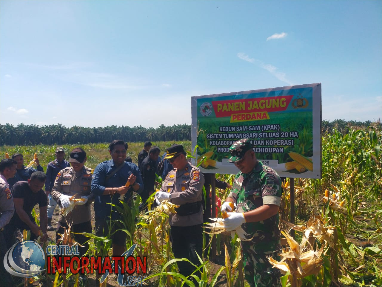 Centralinformationasean.com KANDIS,Dalam rangka mendukung program Presiden Republik Indonesia untuk mewujudkan ketahanan pangan nasional, Kapolsek Kandis Kompol Darmawan, SH, MH menghadiri kegiatan panen jagung perdana di lahan milik Koperasi Produsen Air Kehidupan (KPAK), Kampung Sam-Sam, Kecamatan Kandis, Kabupaten Siak, Senin (2/6).