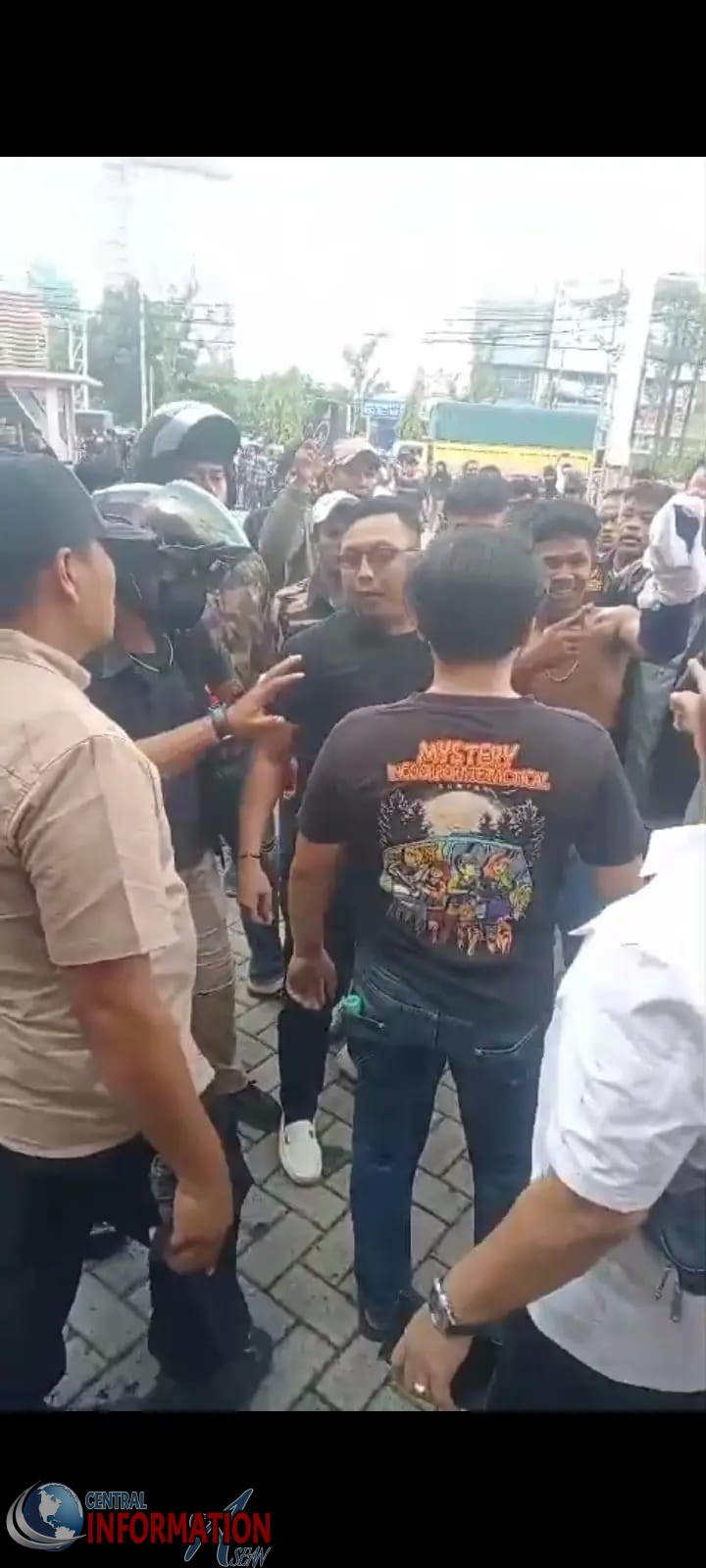 Massa yang mayoritas berseragam hitam terlihat menghancurkan kendaraan menggunakan besi. Beberapa di antaranya juga membawa kayu balok untuk menghancurkan sepeda motor, mobil serta bangunan yang ada di sana.