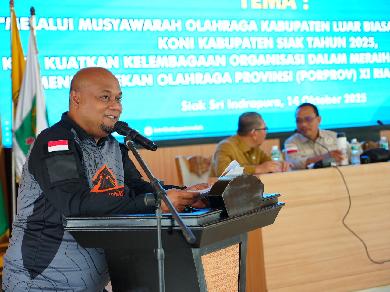 Musorkablub KONI Siak dengan tema melalui musyawarah Olahraga Musorkablub KONI Siak 2025, kita kuatkan kelembagaan Organisasi dalam meraih prestasi terbaik pekan olahraga Propinsi XI Riau tahun 2026 di buka oleh Wakil Bupati Siak Syamsurizal.