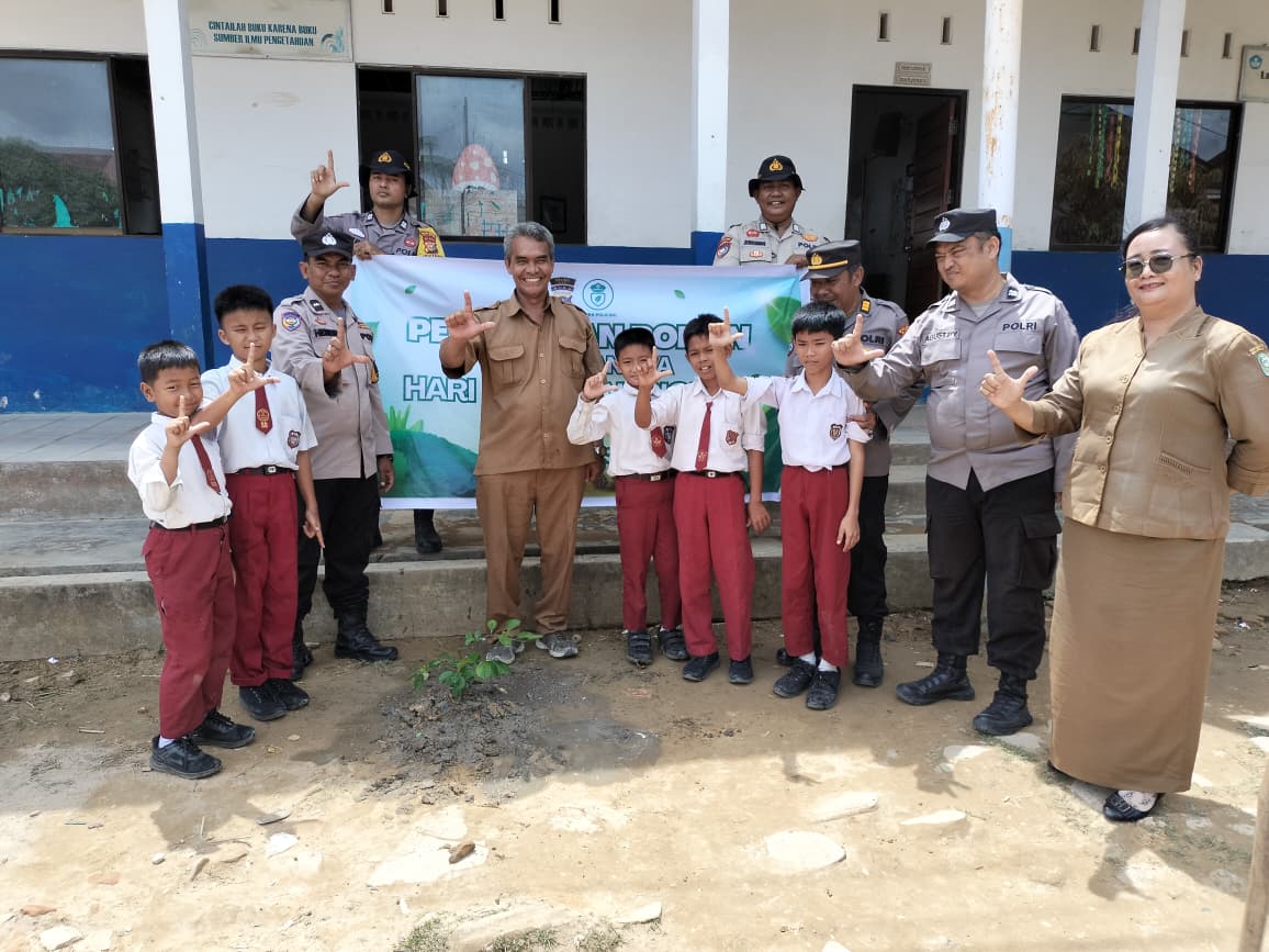 Kanit Binmas Akp Hendra Budiman memimpin langsung penanaman pohon yang diikuti personel Polsek, para guru, serta siswa-siswi sekolah tersebut. Beberapa bubitbpohon yang ditanam diantaranya jambu klutuk dan pohon matoa, ditanam di lingkungan sekolah sebagai bagian dari edukasi menjaga alam sejak dini.