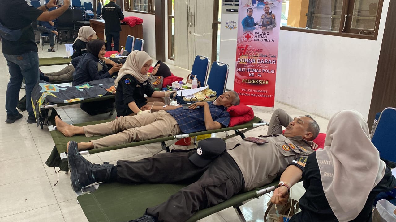 “Donor darah ini bukan hanya sekadar seremonial peringatan HUT Humas Polri Ke-74, tapi juga bentuk nyata kepedulian dan pengabdian Polri kepada masyarakat. Setetes darah dari personel kita bisa menyelamatkan nyawa sesama,” ujar Kapolres Siak.