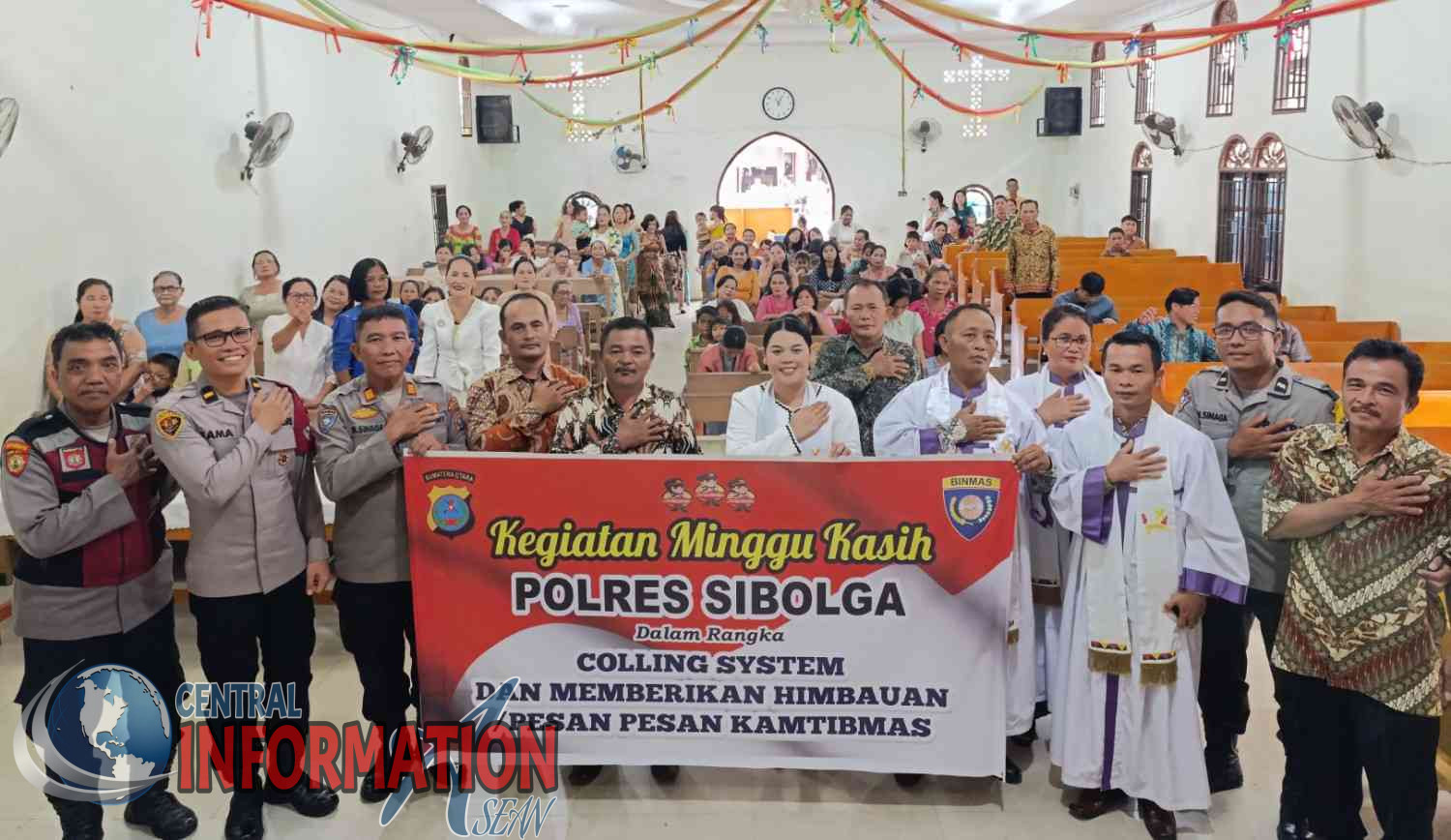 SIBOLGA -Centralinformationasesn.com) Pada Minggu 20 April 2025, Gereja Banua Niha Keriso Protestan (BNKP) Jemaat Gloria, Jalan Toto Harahap Kelurahan Aek Muara Pinang, Kecamatan Sibolga Selatan, Kota Sibolga, dipenuhi dengan kehangatan dan kasih sayang saat Polres Sibolga menggelar acara Minggu Kasih. Kegiatan ini dipimpin Kasat Binmas Polres Sibolga AKP Martua Sinaga mewakili Kapolres Sibolga, AKBP Eddy Inganta, S.H., S.I.K., M.H., bersama jajaran Personil Polres Sibolga yang lain.