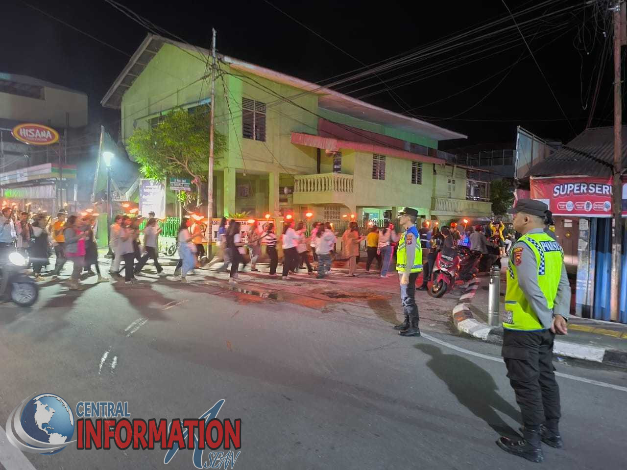 SIBOLGA -Centralinformationasean.com) Polres Sibolga melaksanakan pengamanan dan Patroli untuk memastikan kelancaran serta kondusivitas Pelaksanaan Ibadah Pawai Obor dalam rangka memperingati wafatnya Yesus Kristus oleh Umat Kristiani di Gereja HKBP Sibolga Baru Jalan Kakap No. 1 Kelurahan Pancuran Kerambil Kota Sibolga dan Gereja GBKP Jalan Rajawali Kelurahan Aek Muara Pinang Kota Sibolga. Kegiatan ini dilaksanakan dengan mengedepankan pengamanan terbuka dan tertutup di 2 (dua) lokasi Gereja yang melaksanakan kegiatan Ibadah Pawai Obor tersebut, Sabtu (20/04/2025), pukul 03.30 WIB sampai dengan selesai.