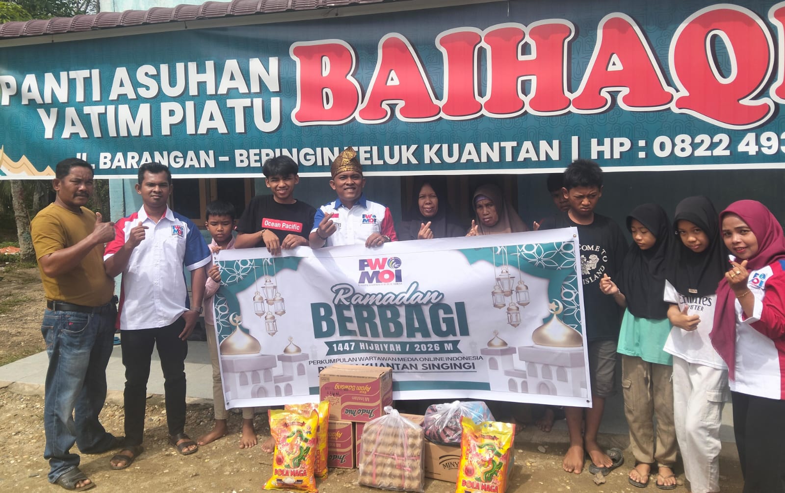 Kuantan Singingi,- Perkumpulan Wartawan Media Oline Indonesia (PWMOI) Kuantan Singingi (Kuansing) melaksanakan kegiatan sosial dalam rangkah Ramadhan Berbagi di Panti Asuhan Yatim Piatu Baihaqi Umar, Desa Beringin Taluk, pada Rabu (18/3/2026).