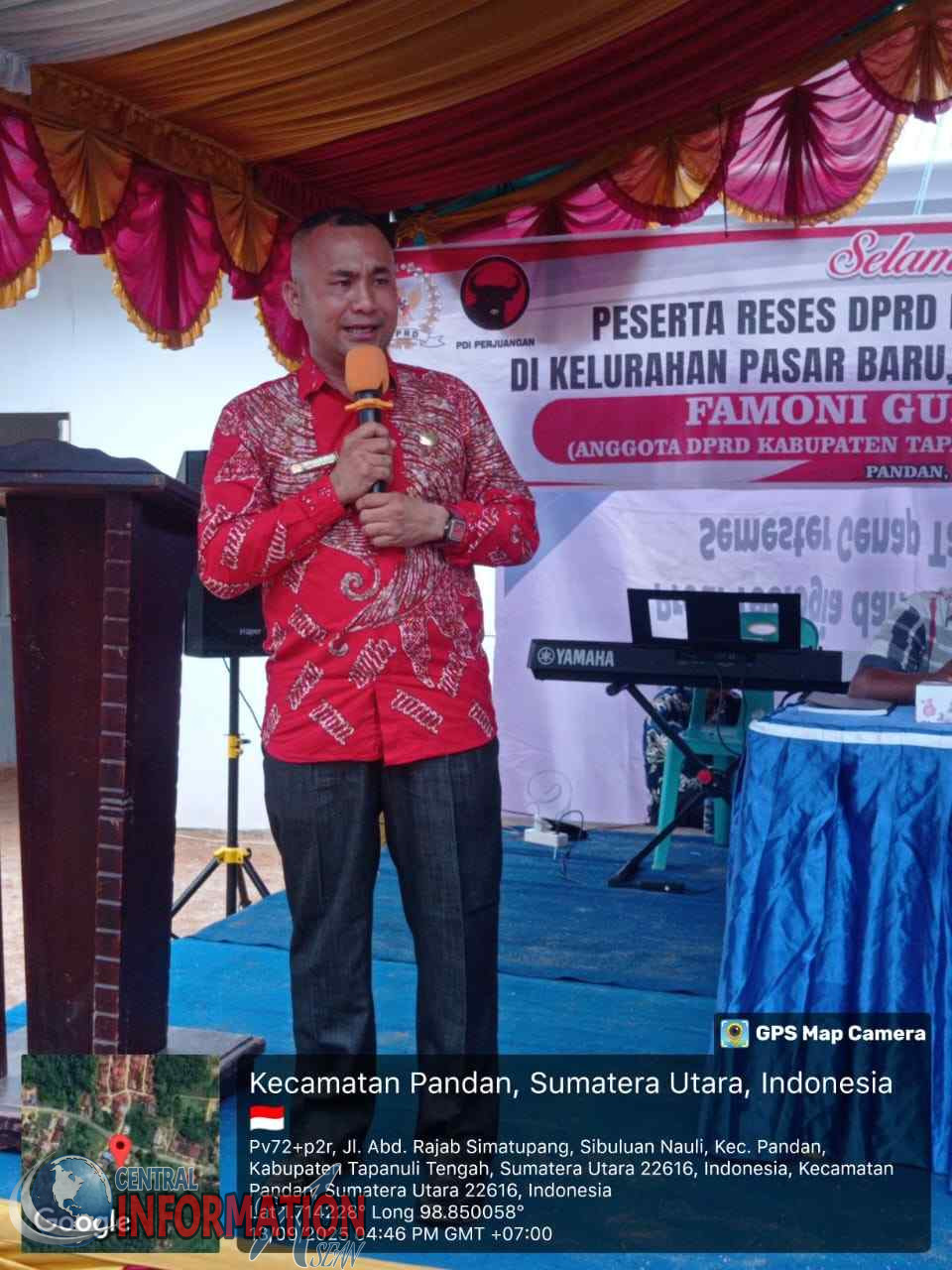 TAPTENG -Cetralinformationasean.com) Ratusan warga masyarakat menghadiri acara reses Anggota Dewan Perwakilan Rakyat (DPRD) Kabupaten Tapanuli Tengah Sumatra Utara, (Tapteng) daerah pemilihan (Dapil) I Famoni Gulo, di jalan Abdul Razab Simatupang, Kelurahan Pasar Baru, Kecamatan Pandan, Kabupaten Tapteng, Sabtu (13/9/2025).