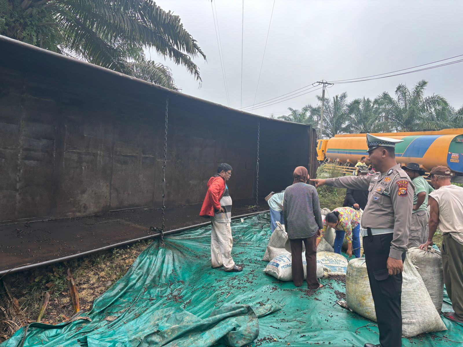 Sat Lantas Polres Siak Tangani Laka Tunggal Truk Tronton di Kandis, Kerugian Capai Rp430 Juta