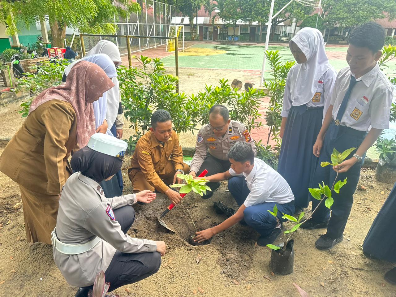Selain itu, pihak Satlantas Polres Siak juga menyerahkan bibit pohon kepada pihak sekolah sebagai bentuk dukungan nyata terhadap gerakan penghijauan di lingkungan pendidikan.